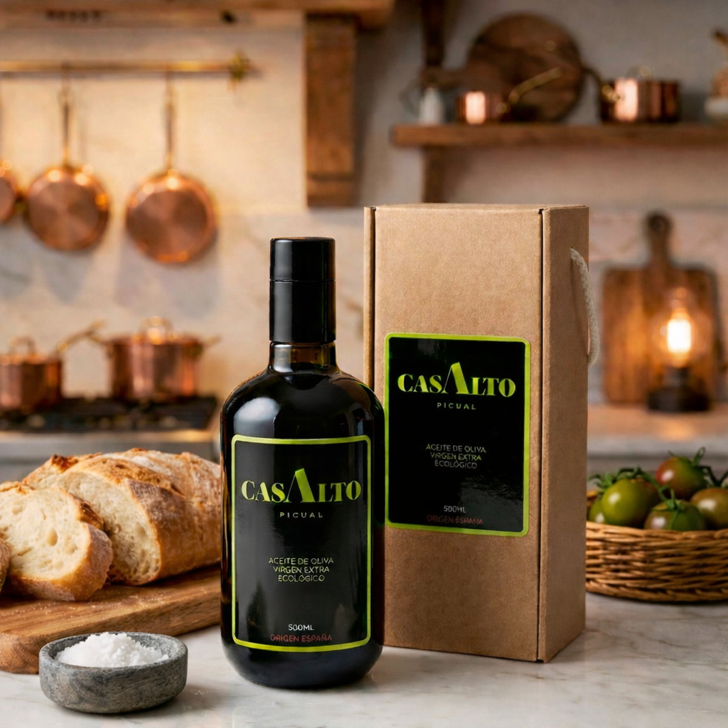 CasAlto es un aliado perfecto de la Dieta Mediterránea, apreciado tanto por su valor nutricional como por su carácter gastronómico. Un aceite gourmet, elegante y honesto, pensado para quienes buscan excelencia, origen y autenticidad en cada gota.
