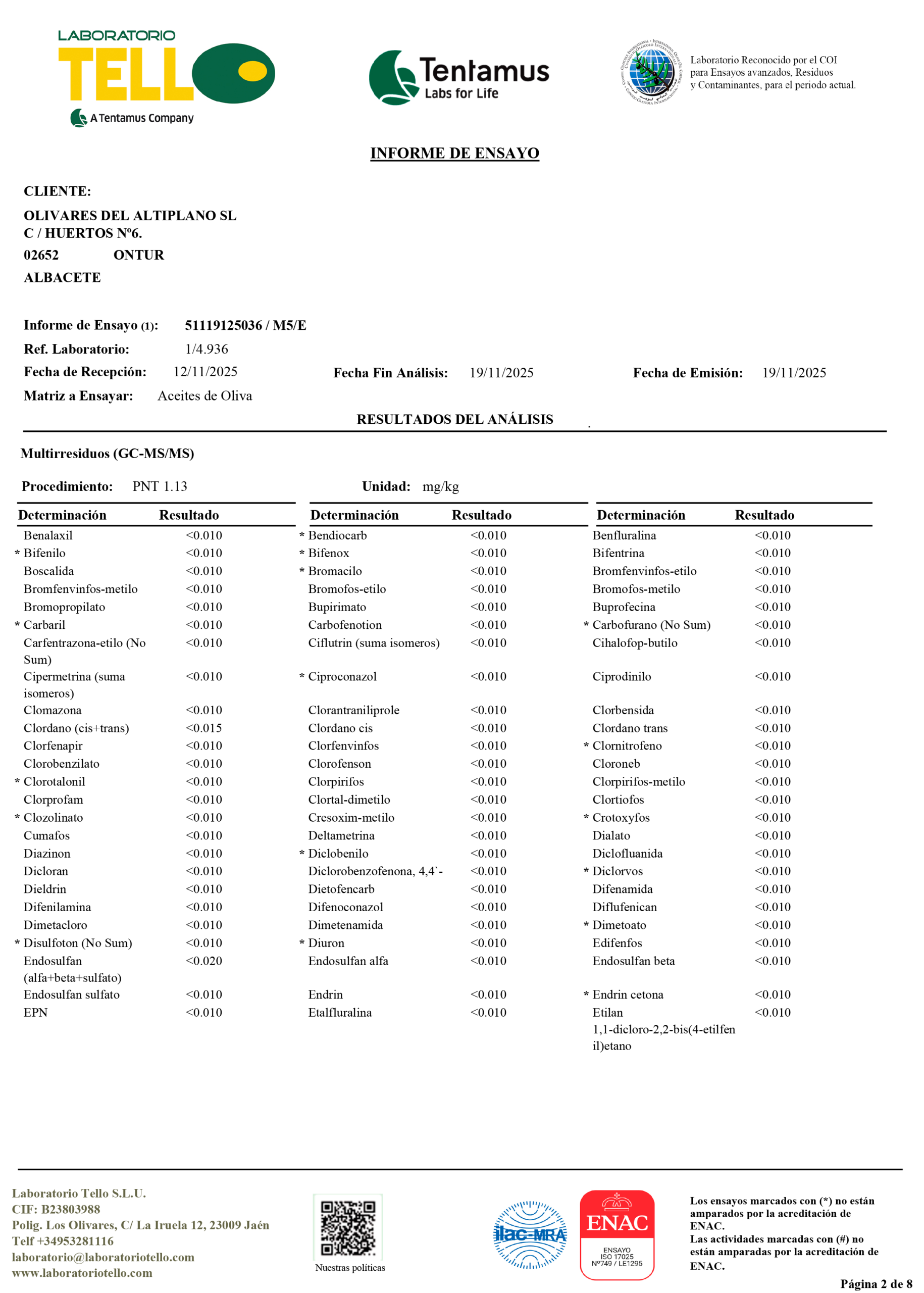 El perfil sensorial ofrece un frutado verde, equilibrado y elegante, con una armonía que se percibe desde la primera degustación, percepción que ratifican las analíticas que puede consultar en esta página. Fresco, limpio y bien estructurado, acompaña en la mesa sin imponerse, realzando sabores y aportando matices. Un aceite para quienes valoran la sutileza y el equilibrio en la experiencia gastronómica.